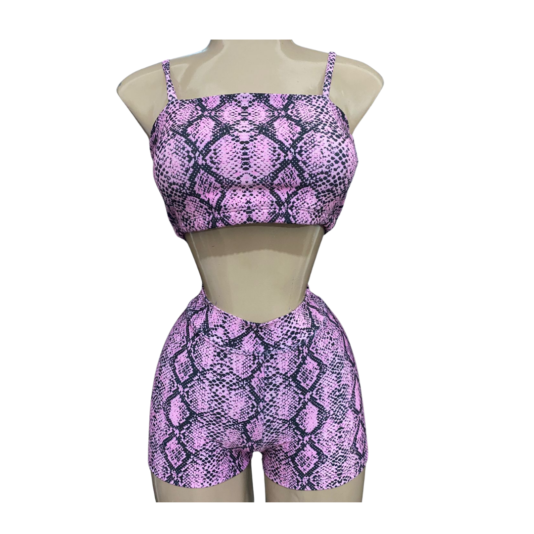Comodo set para el gimnasio el bottom es nuestro short celi V cut con scrunch y nuestro nuevo Top Tango ambos en estampado pink snake